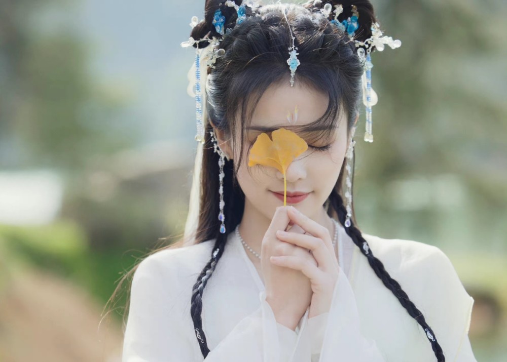 仙气的白色服饰搭配精致的发型和头饰,让白鹿整个人看起来灵气十足,让人很有看剧的欲望。