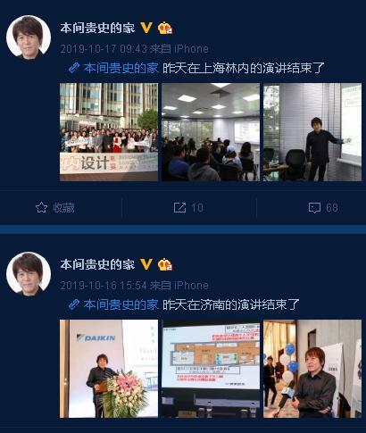 本间贵史在微博,除了演讲和设计,不断的出差,最大的特色便是美食。