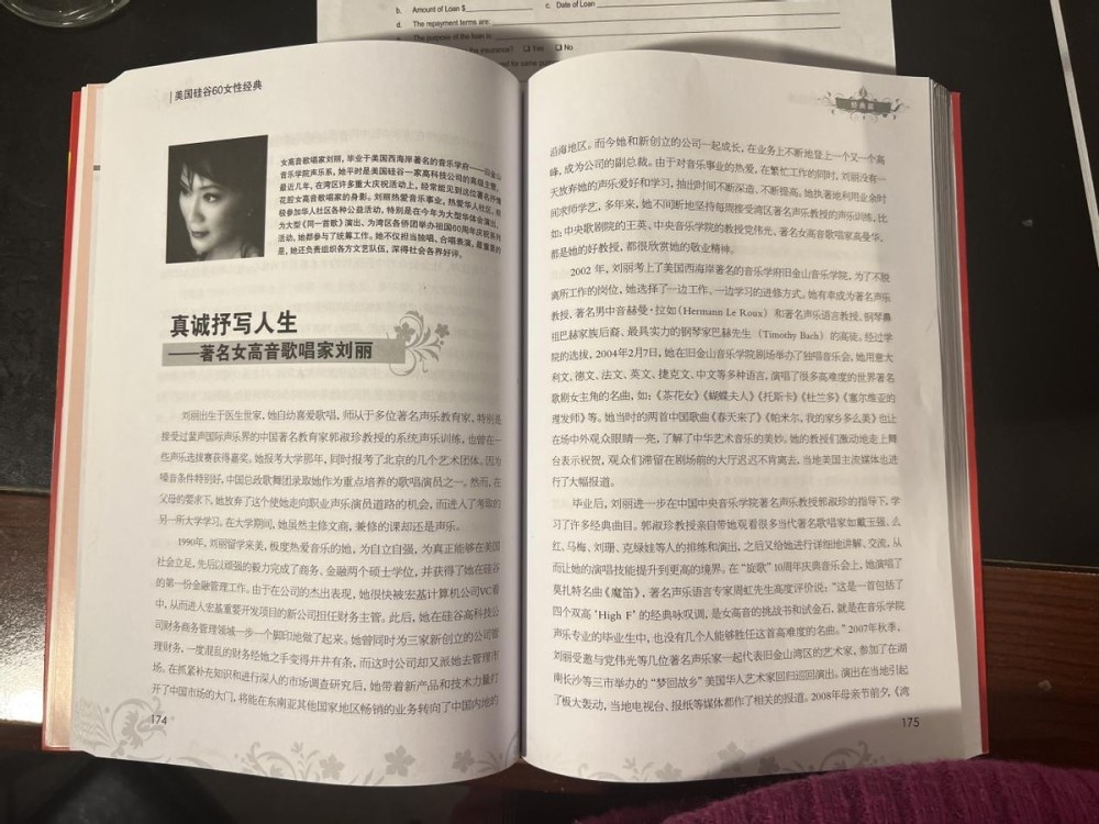 在旧金山湾区我参加过大大小小演出很多场,国家出版社还出版了我的DVD/CD专辑,在很多著名书店发行,我在旧金山湾区获得了很高的知名度,也通过这样的方式向世界传播中国文化。我的故事,也被写入《美国硅谷60女性经典》一书。