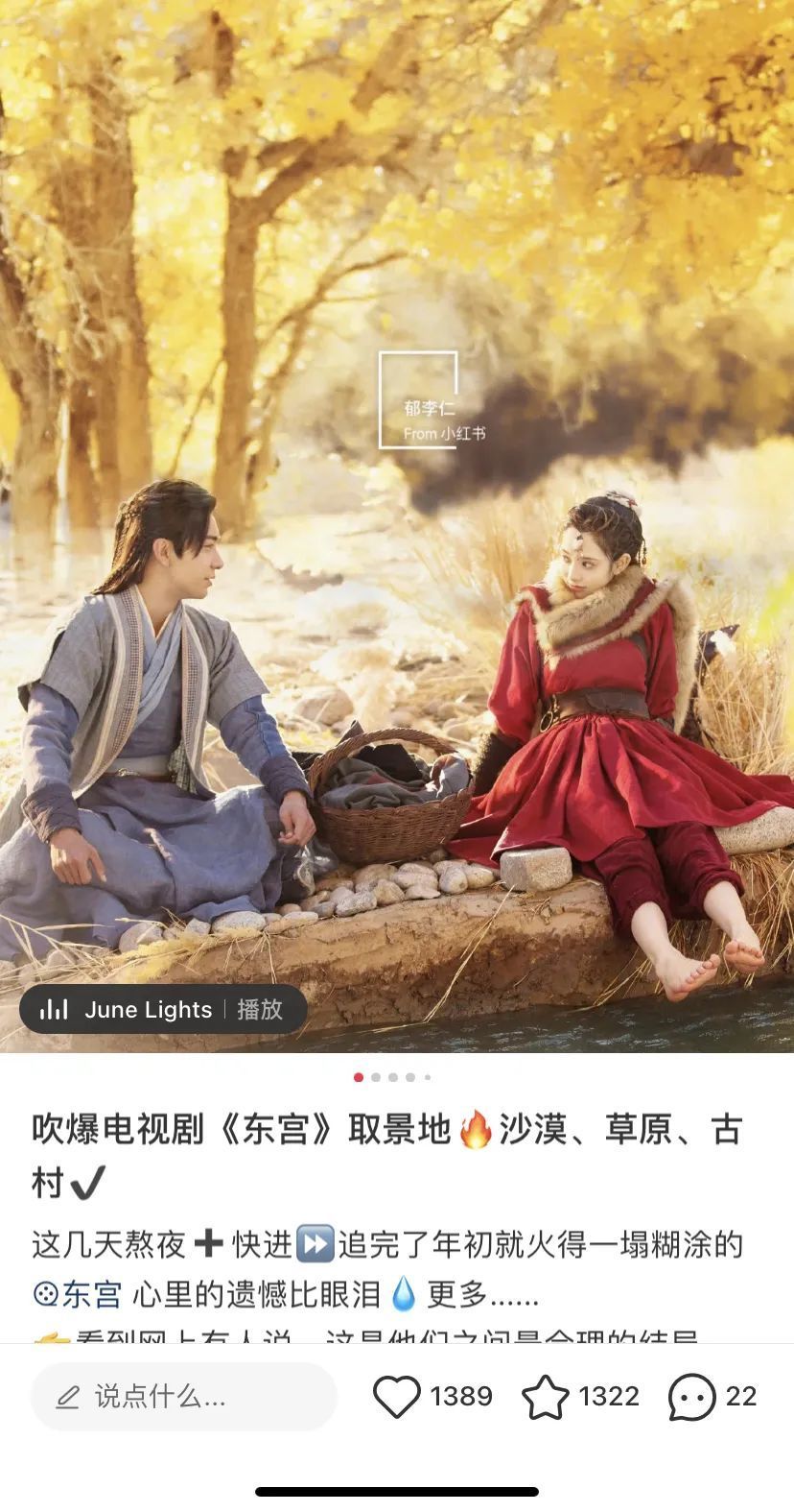 从标题中,我们可以确认本篇笔记的主要内容就是仿妆,采用电视剧里主角的角色妆面没模仿,即在美妆手法上和妆后与明星的妆面的相似度引起用户互动欲,又以电视剧人物以及电视剧热度蹭流量。