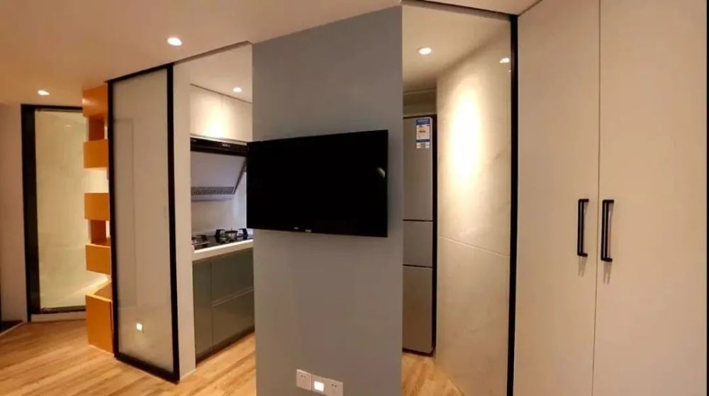 打开门进入房子后,就能纵观屋子的所有摆设。二楼的最深处是浴室,隔壁是个小厨房,中间有个小型的餐桌正好容得下两人用餐,而“门后”搁置了一个懒人沙发,闲暇时或坐或躺都十分惬意。