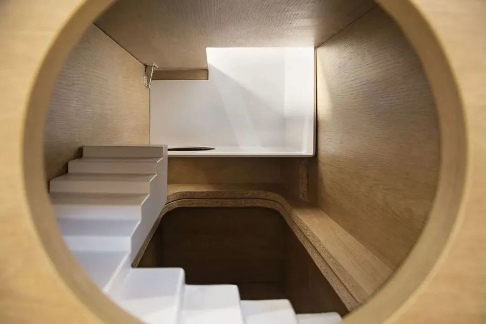 连接楼层与楼层之间的是一把可折叠梯子。当处于收起状态时,楼梯将向上折叠,与上层底面齐平。