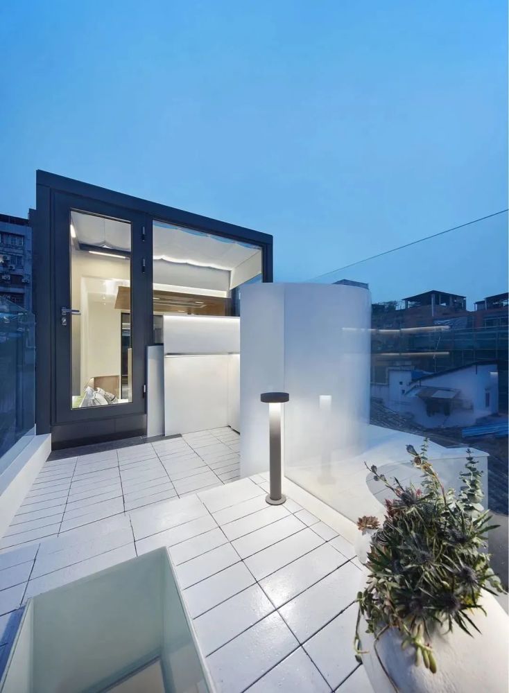 在设计师的精心改造下,这个三角形的纸片屋变身拥有三室一厅二卫、厨房阳台屋顶花园一样都不少的市中心复式公寓。