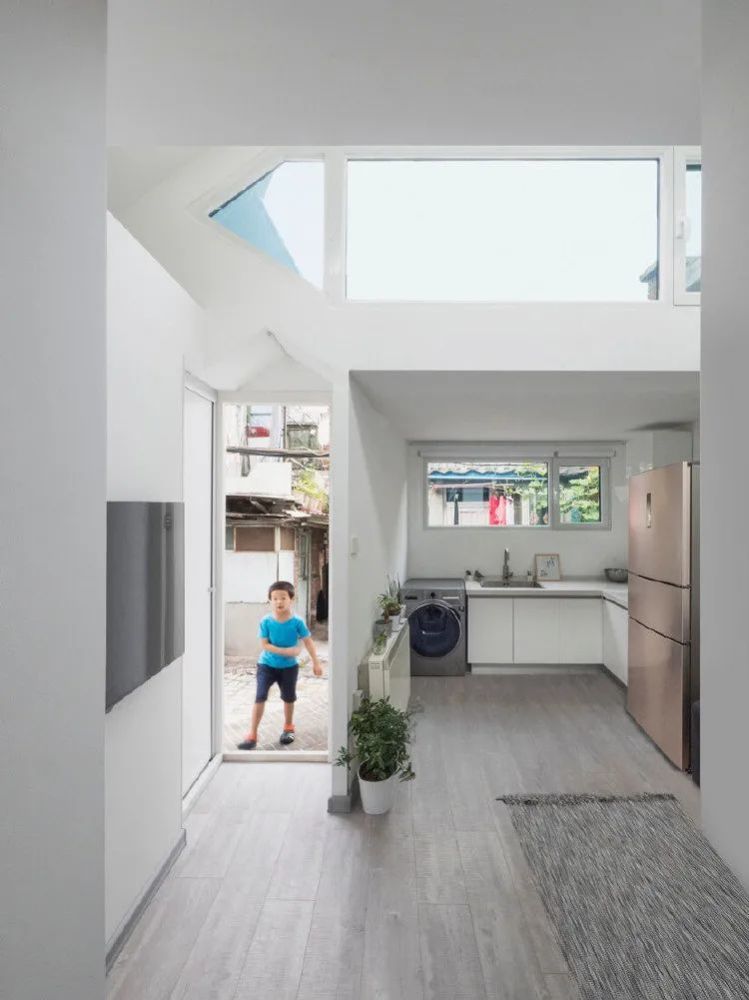 原本只有在建筑正立面的一面微弱采光,被改造成四向度的采光,让房子沐浴在阳光之下,摆脱了以往的阴暗。