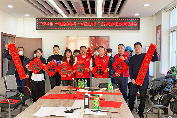 新春佳节来临之际,为营造欢乐祥和的节日氛围, 1月10日,三新社区邀请团市委、市青年书法家协会开展“笔墨绘春意 幸福进万家”新春送福送春联活动,为辖区居民、商户及快递行业送上满满的新春祝福。