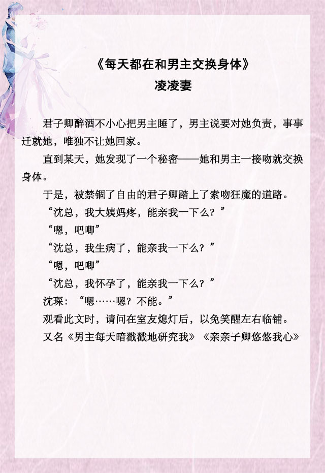 女主脑回路清奇,在跟男主不可描述之前一度误以为自己喜欢是妹纸,甚至还有女神,互换身体后还用男主的身体保护了女配,以总裁的身份怼之前一直跟她过不去的同事,跟男主妈妈的互动也很有爱,让人忍俊不禁。文风诙谐幽默,人物都可可爱爱的,可以阅读~