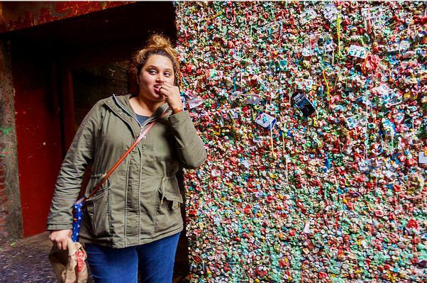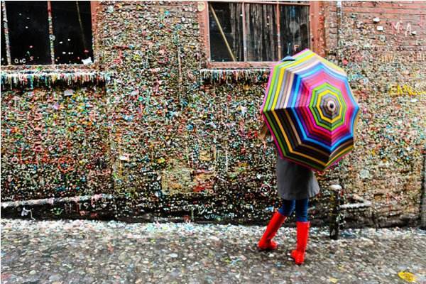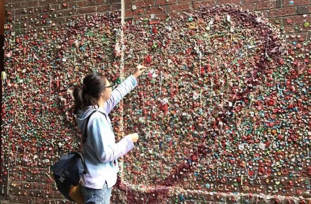 而且最让人恶心的是,很多当地人都是以此为荣的,并且当地人来到这里之后还会趴上去舔一口,是不是想想都觉得恶心呢?这面墙位于西雅图派克市场里,市场戏剧院中的一扇外墙,这扇墙长达15米,高为4.5米,在远处的时候,你可能会觉得这里色彩斑斓的挺有特色的。