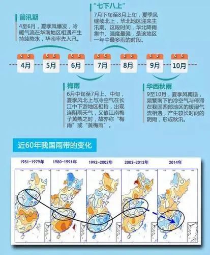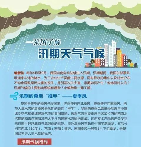 根据洪水发生的季节和成因不同,一般要分为4种汛期: