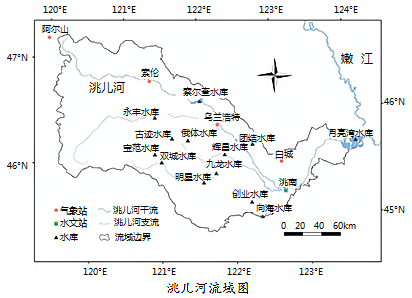 (2)当地为季风性气候,降水多且集中夏季河流水量大;当地有修建了许多水库右增加了河流的水量;据图可知月亮泡水库位于整个流域的下游夏季汛期水量巨大;又因为月亮泡水库为平原式水库应对险情的能力差。