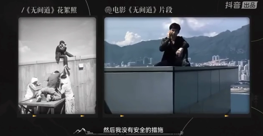 《无间道》里,梁朝伟在36楼的天台上打电话,没有防护措施。