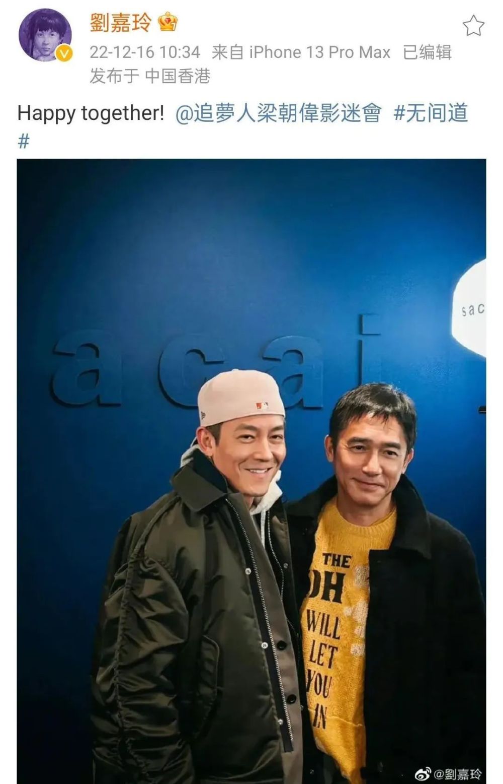 12月,刘嘉玲晒出梁朝伟和陈冠希合影,地点是香港。