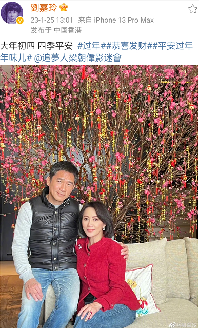 但这并不意味着两个人没有互动,相反,仔细翻看刘嘉玲的动态,会发现刘嘉玲常常都陪在梁朝伟身边。