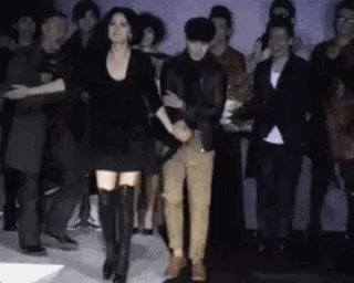 (被刘嘉玲硬拽上台,不知所措,一秒钟就落荒而逃)