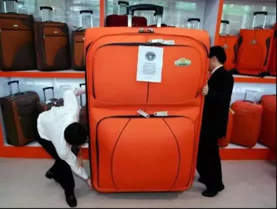 2.世界上最大的行李箱。现在交通发达了很多人都喜欢出去旅游,在外出的时候人们总是要带一些自己的东西,这个时候就要用到行李箱,一般的我们的行李箱也就五六十厘米高,但是在第100届中国出品商品贸易会上,一个巨大的行李箱出现了,它高183厘米,里面可以很轻松的放进去一个人,这个行李箱也是目前世界上最大的行李箱。