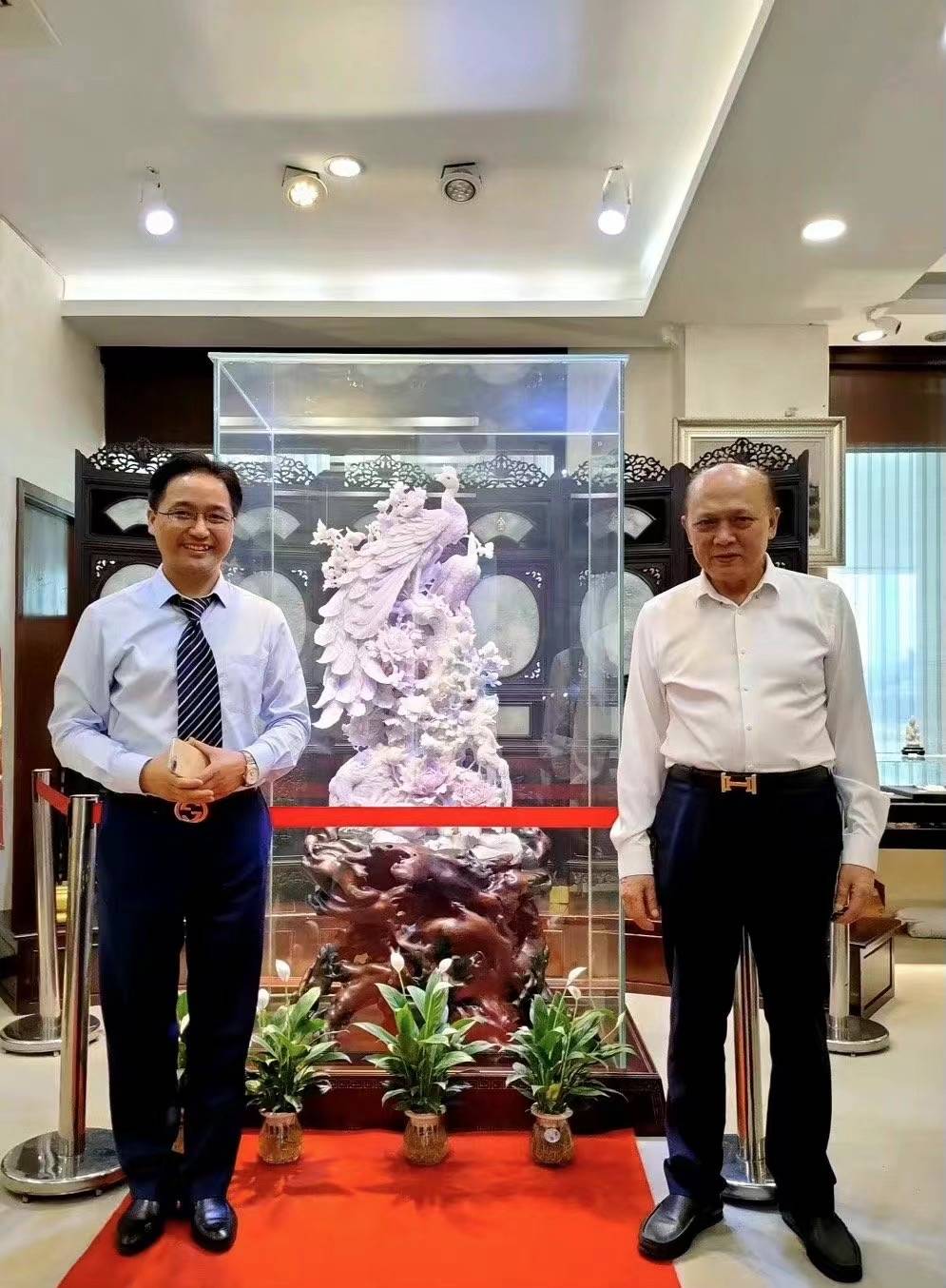 《非遗之美》总编姚泽民(左一)2020年采访澳门著名艺术家梁晚年(右一)