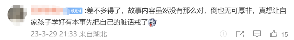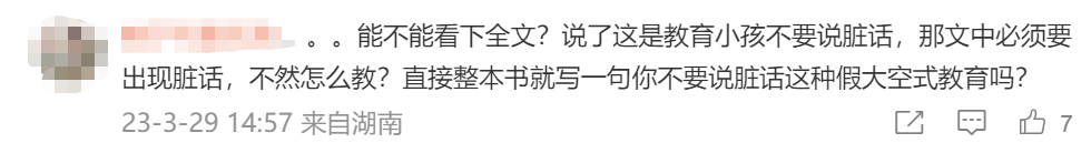 “这本书内容讲的是说脏话不好,它是想告诉孩子们不要说脏话,所以它里面会提到几句脏话。读者可能没把故事看全,这是属于断章取义了,他可能只看到有脏话了。可能早些年(编写时候)没想过(上述阅读问题),以后可能就不出(版)了。”