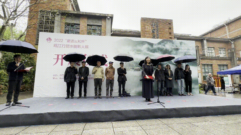 △中国摄影家协会分党组成员彭文玲女士宣布2022“童话云和杯”瓯江行丽水摄影大展开幕