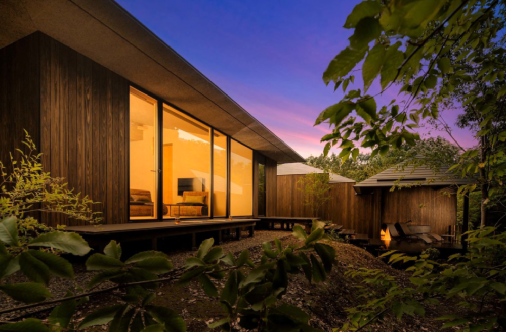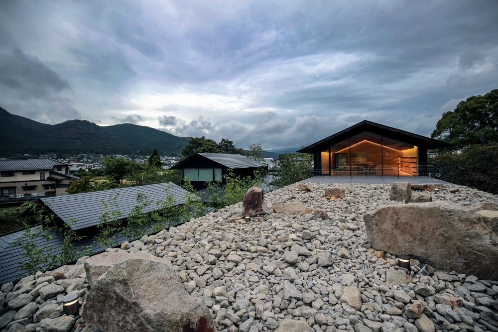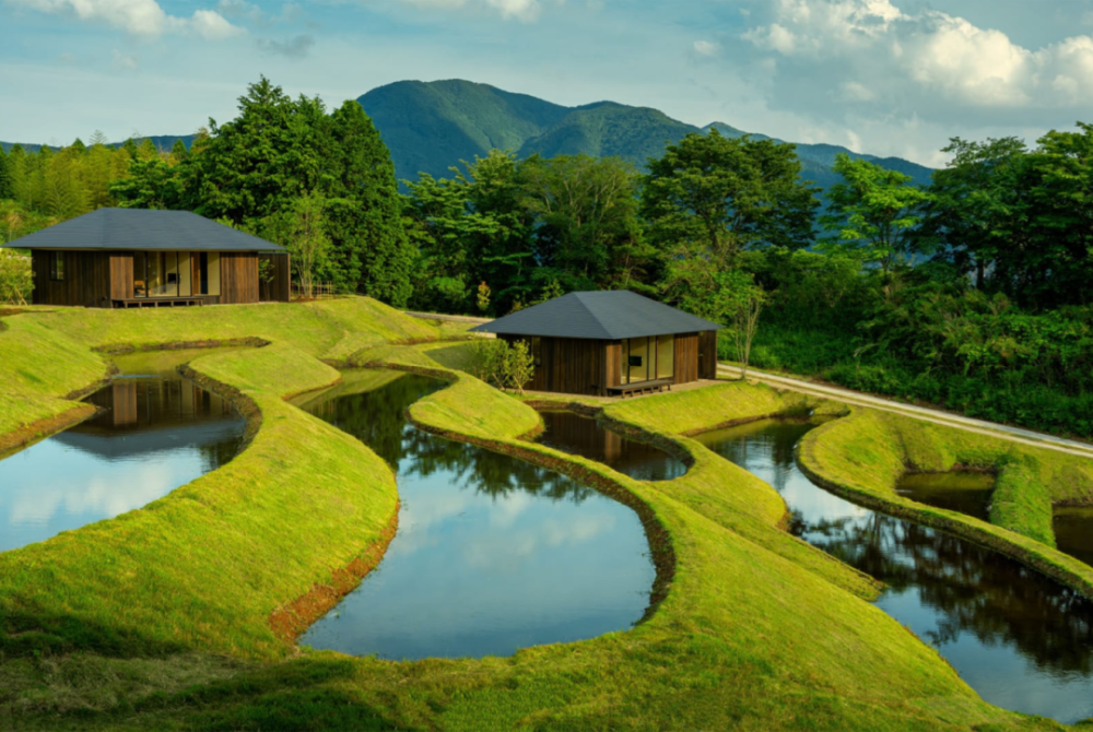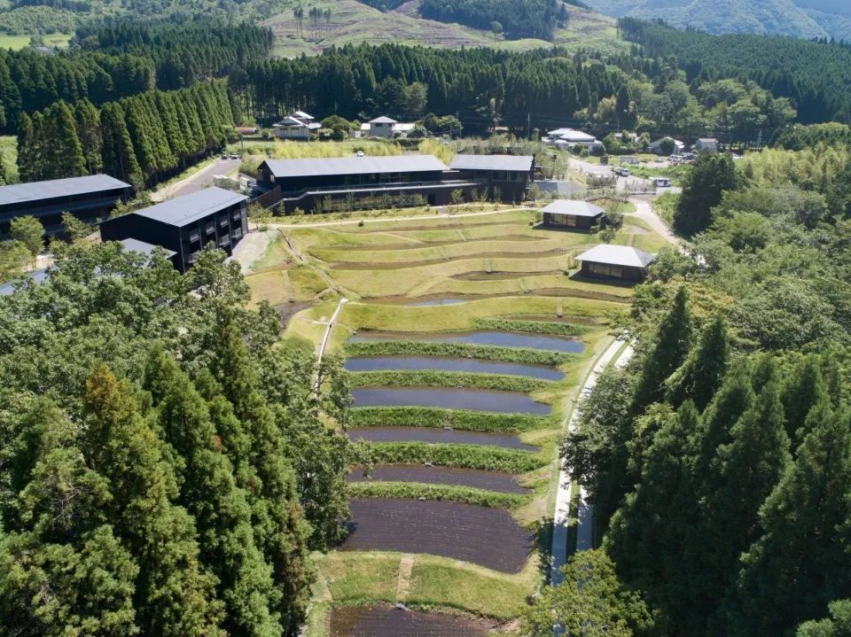 由隈研吾操刀,隶属星野集团的温泉旅馆品牌「界由布院」,位于可远眺由布岳的静谧之地,设计上引用当地常见农舍风格,以大地原始景观为主角,将建筑退至自然之后,不只突显起伏水稻梯田所烘托的恬适氛围,同时也如隈研吾所说的:「当建筑与『场所』达到一致的瞬间,就是建筑的至高幸福。」
