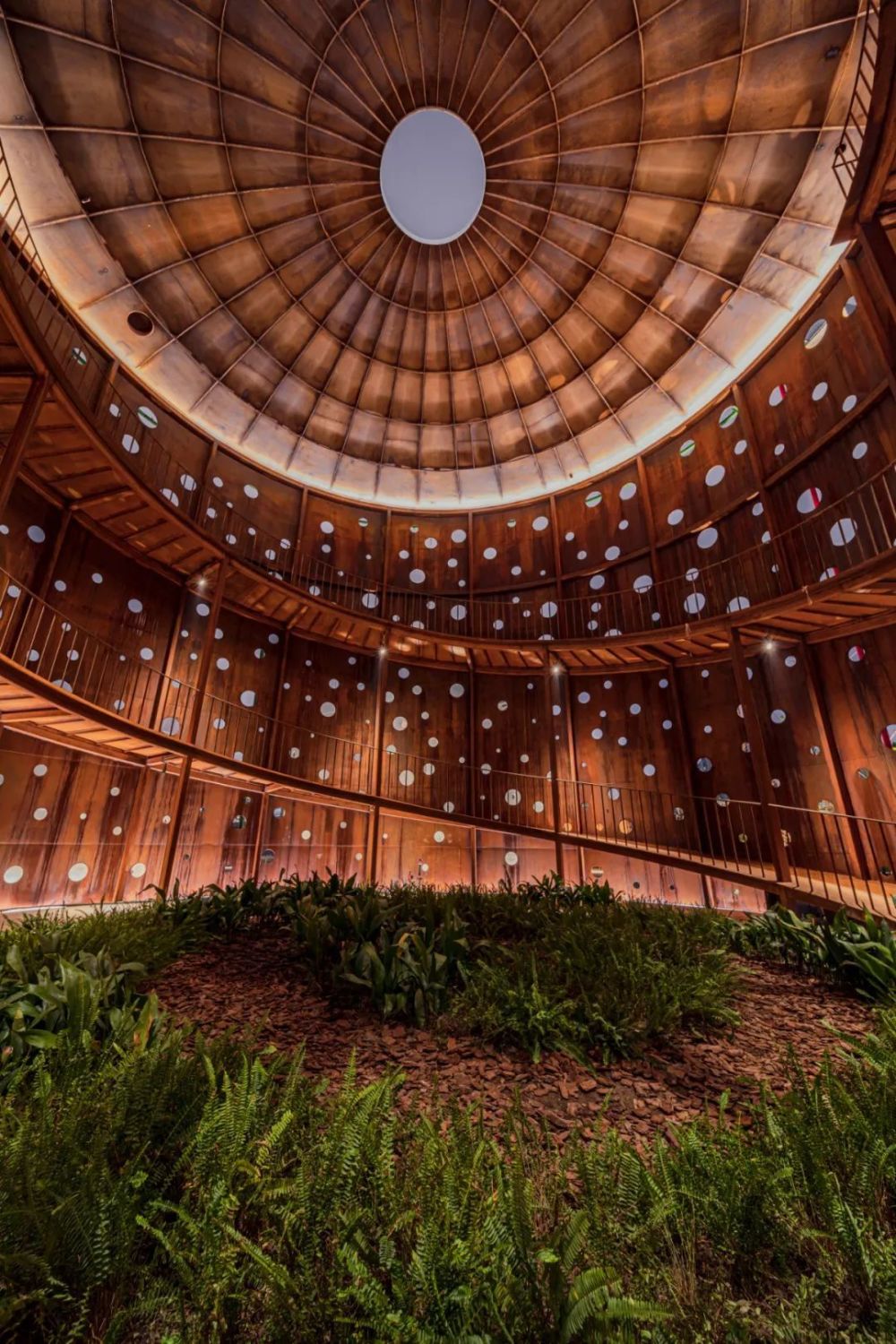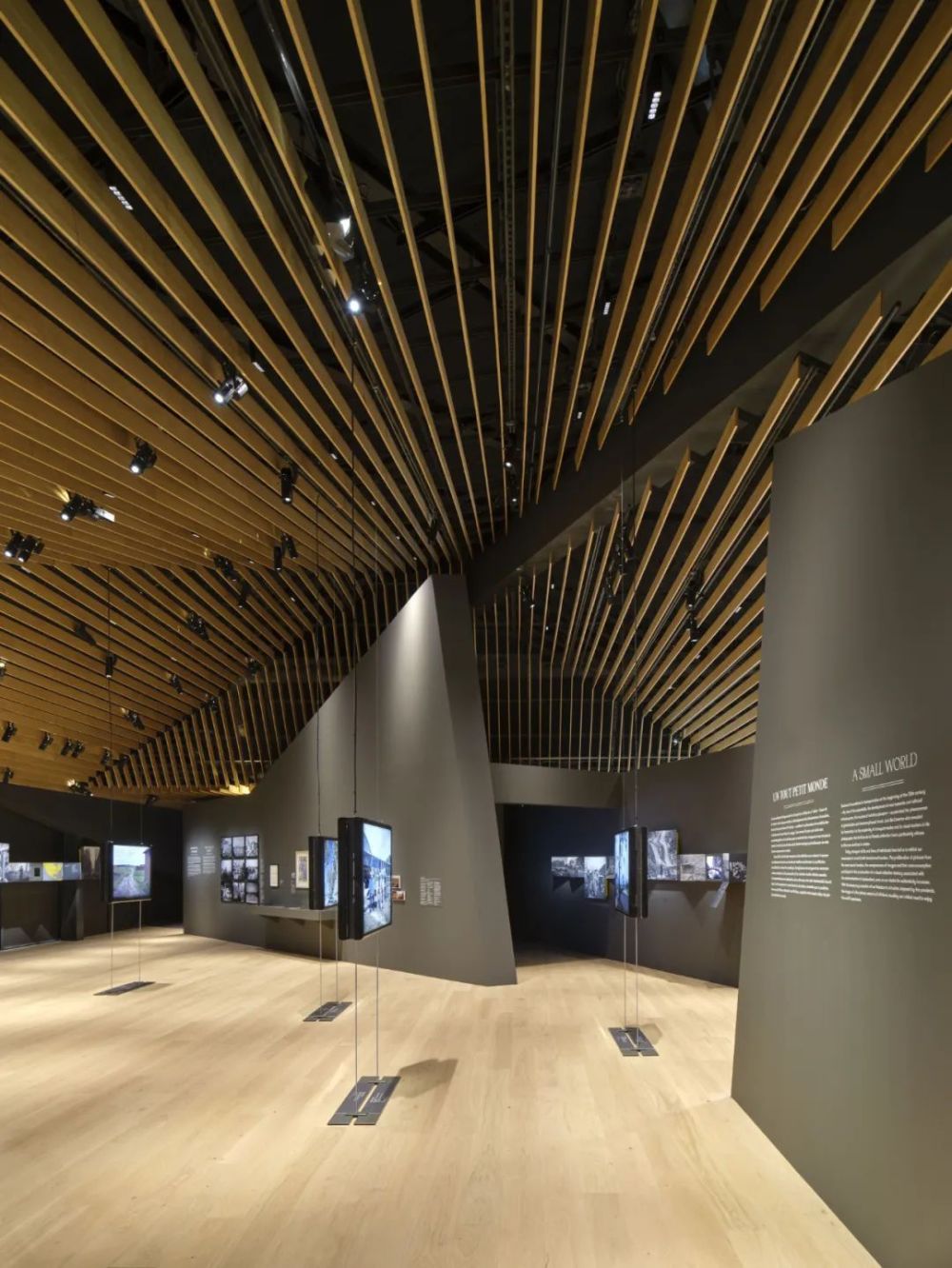 博物馆由一系列圆形形状组成,它们以非等级、非中心的方式组织。连续曲线的线性绿墙扩展和追踪地下空间结构,定义了地上的花园和路径。