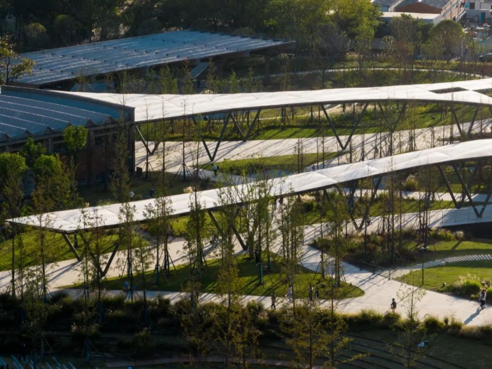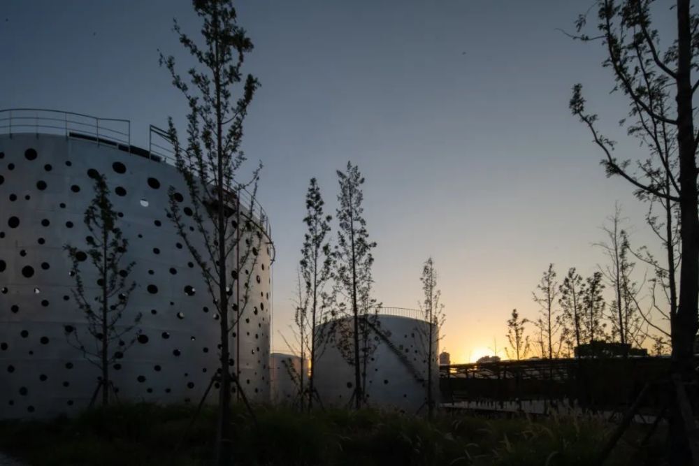 隈研吾弱化了建筑的突兀感,既保留已列入历保建筑的仓储大房、钢混构筑雨棚和三个油罐,并打通“运道”,让工业遗存融入周边的自然、人文环境。