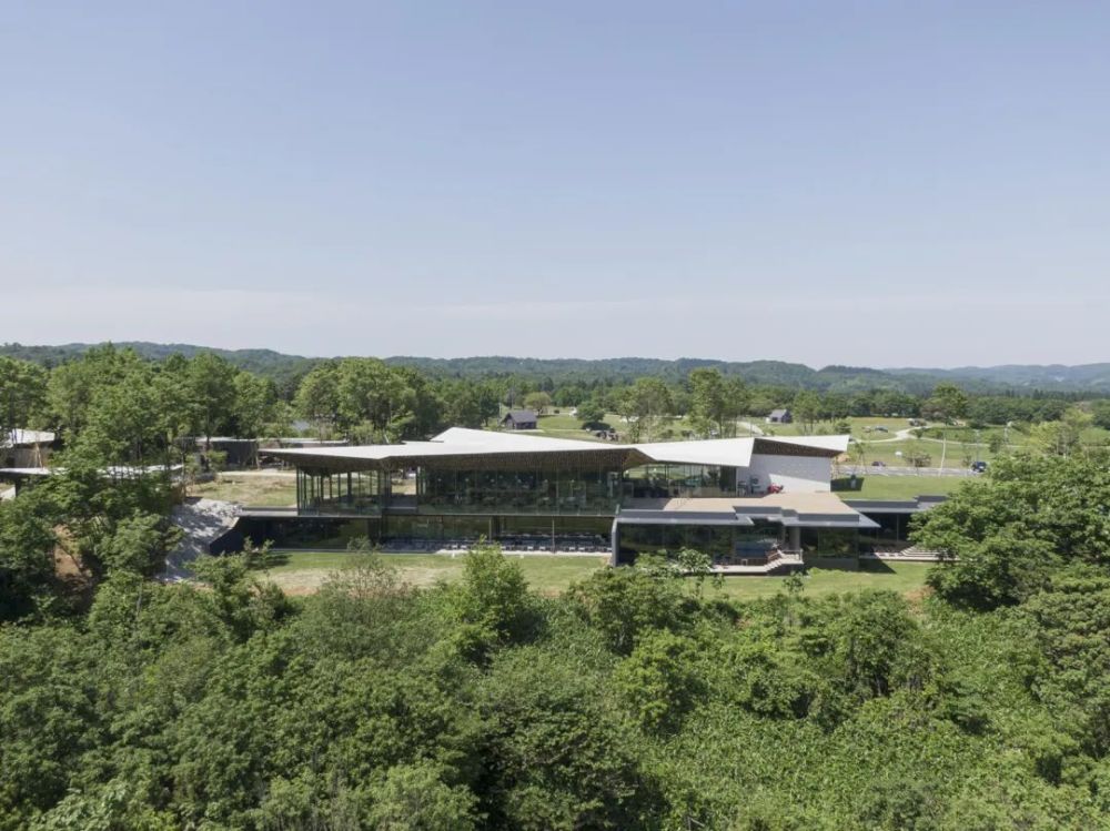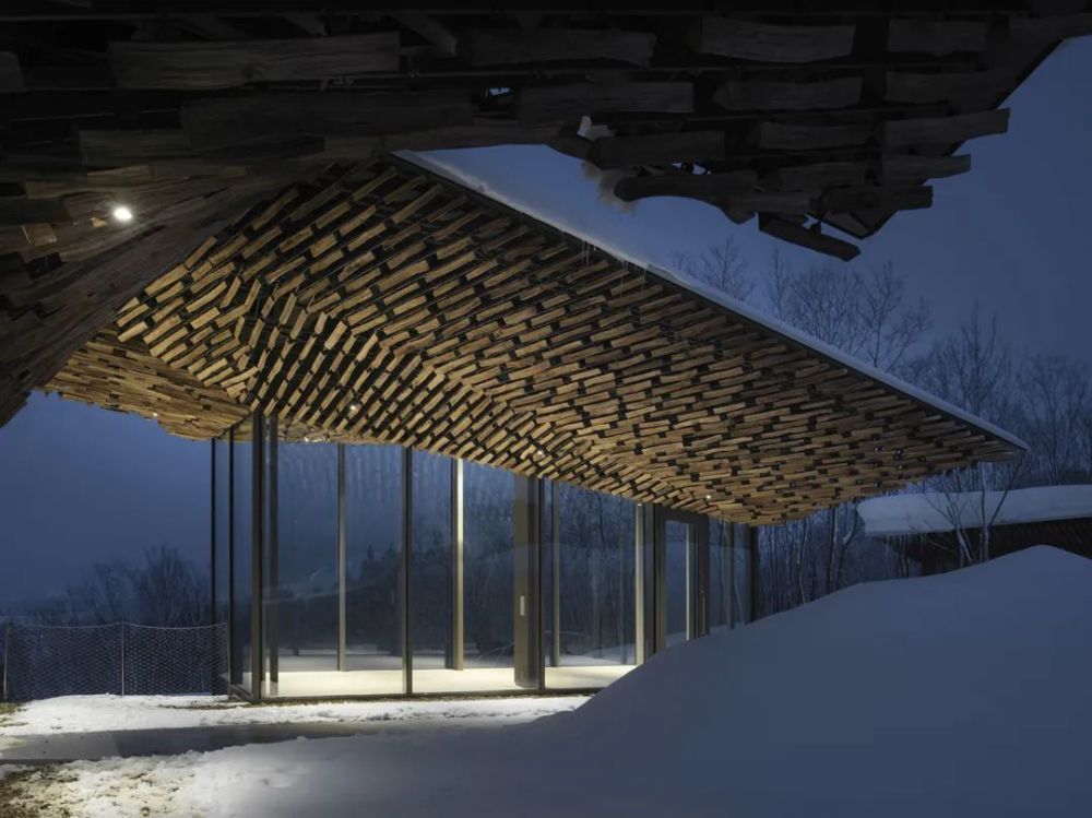 隈研吾事务所为户外品牌Snow Peak在其位于新泻三条市的总部打造了一座附属的综合体,集合了温泉、别墅和餐厅的功能。团队试图在建筑中诠释其品牌理念,期望引领访客将活动重心由室内转向室外,拥抱自然。