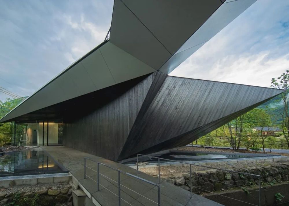 项目位于日本九州汤布院,Comico Art Museum Yufuin 美术馆新馆扩建由隈研吾操刀设计,让水、光交织,与自然景观相融,并延续日本传统木工技法「烧杉」做建筑外墙,几何造型利落坚硬,颇具未来感。