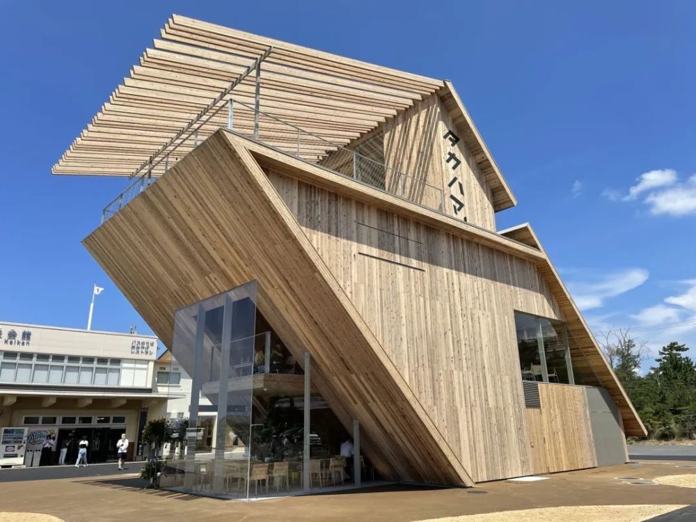 建筑高达9米,外观采用产自鸟取县内的木材建造,一层以落地玻璃窗塑造开阔视野,渗透光线,登上顶层露台可以观赏鸟取砂丘和日本海的风景。