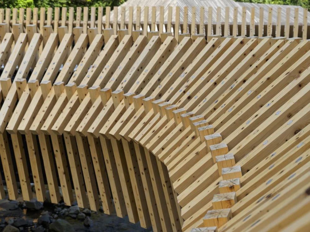 通过将日本引以为豪的木工技术与现代计算机技术相结合,久杉桥呈现出一种与传统土木结构截然不同的柔和且充满人情味的表达。