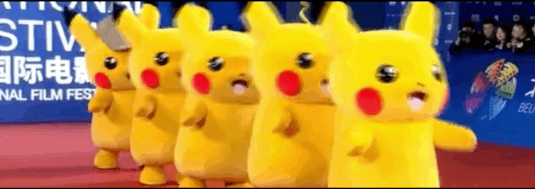 2019年,在第九届北京国际电影节开幕式红毯仪式上,五只“真人”皮卡丘排成一列,摇摇晃晃地走上红毯,瞬间成为了全场的最大亮点,吸引众多明星前来和它们合影,这群当之无愧的“毯星”,让一众网友惊呼简直是“世界级的可爱”。