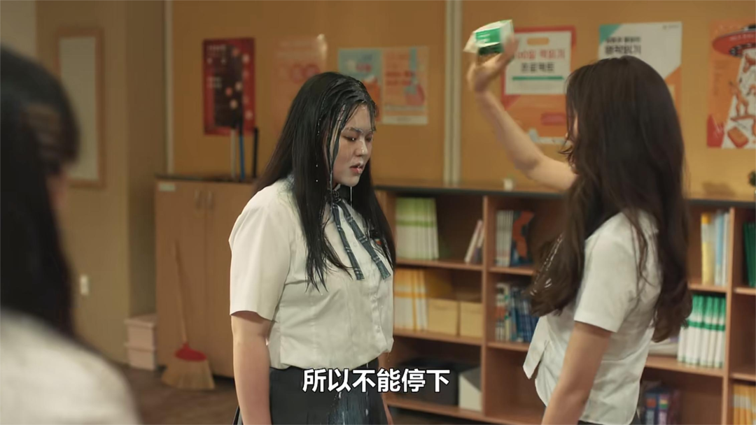 与其他霸凌剧不同,女主在面对霸凌后反抗了,屏幕前的我们大赞女主做的好,但镜头内的同学却在对反抗之后的女主指指点点,真的很让人无奈。