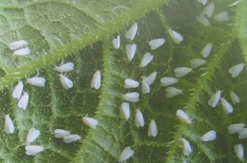 6.在白粉虱发生初期及时用药杀虫杀卵,即每株平均有成虫2-3头时进行,尤其是在“点片”发生阶段除选用对路药剂外,喷药时间最好在早晨露水未干时进行,中、下午由于白粉虱翅膀干燥,便于飞翔,不易喷到身体上。