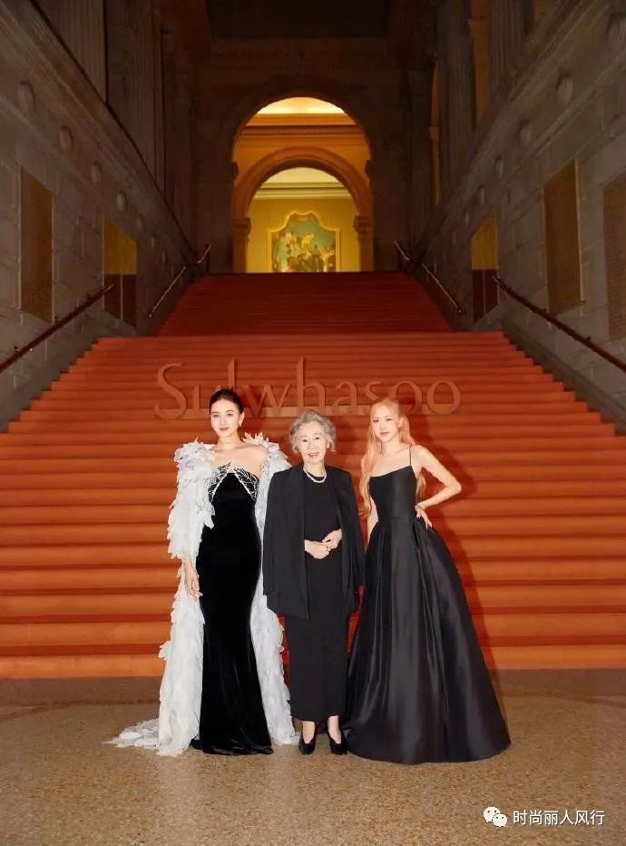 宋佳和BLACKPINK朴彩英同框,也是稳赢,大姐大的即视感啊!中间的是韩国老演员尹汝贞,宋佳的黑白造型,在这样的合影中,气场更加强。