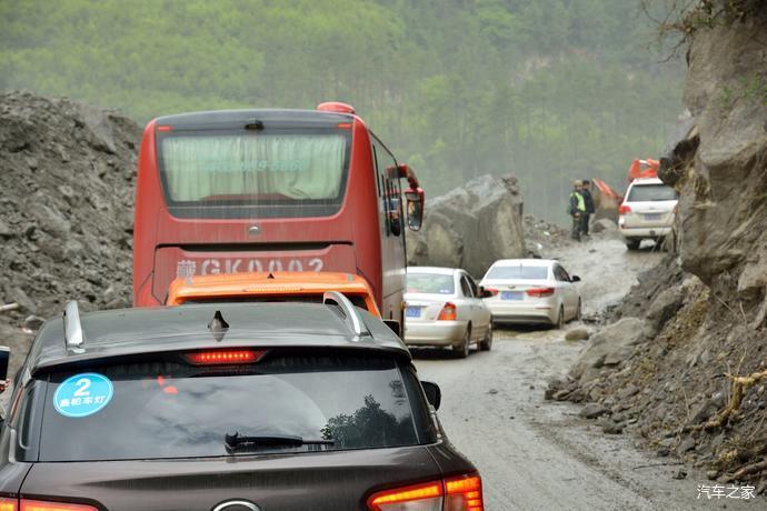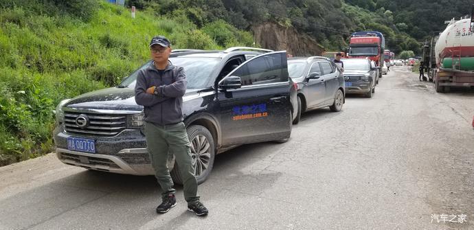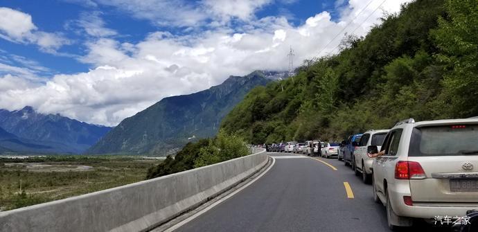 进入波密县城就遇见交通管制,虽然十多分钟就开始放行了。但是出城三十公里左右就开始堵车了,由于泥石流路段不稳定,时有小规模泥石流发生,为了保障安全,实行的单向间断放行。波密到塌方点索通村分了几个管制点实施间断放行,一路走走停停,于晚上12点左右走到了距离泥石流路段不到十公里处。前方传来最新消息,由于一直有小规模的泥石流发生,泥石流路段晚上停止放行,待天亮后视情况再放行。听着帕隆藏布江的流水声,大家集体在车上睡了一晚。一直到第二天上午11点才通过泥石流路段,整整堵了二十四个小时。