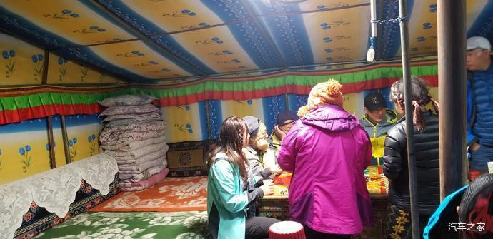 找了一处藏民帐篷进去休息,里面很暖和,喝酥油茶,暖暖身。珠峰大本营海拔5200米,风很大,气温只有几度,必须做好保暖,该穿的衣服是全部穿上了。喝了酥油茶,休息片刻,大家就去看珠峰,运气不佳,珠峰没能露出全貌。大家纷纷在珠峰大本营的两个纪念碑留下到此一游照。其实这里只是游客的大本营,登山的大本营还要再往里面走几公里,不过里面有武警检查,没有登山之类的证明是没法进去的。值得一提的是,同行的小伙伴们都没出现明显的高原反应,状态都不错。在大本营逗留了三多小时,就开始返程前往拉孜县。至此,第一阶段G318最美景观大道的行程就结束了,即将开始G219新藏线的旅程。