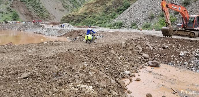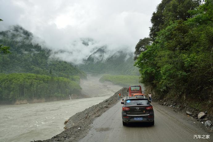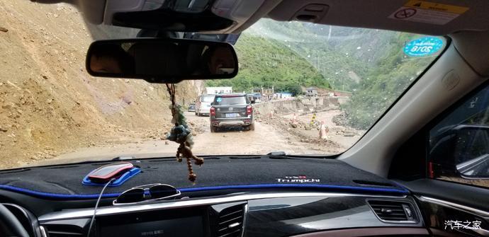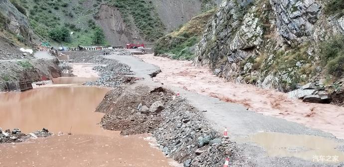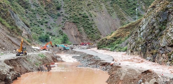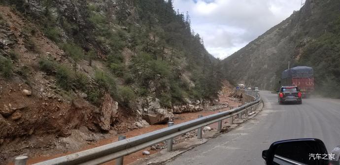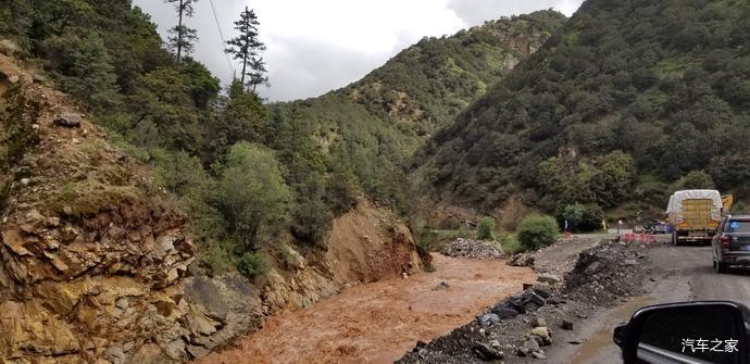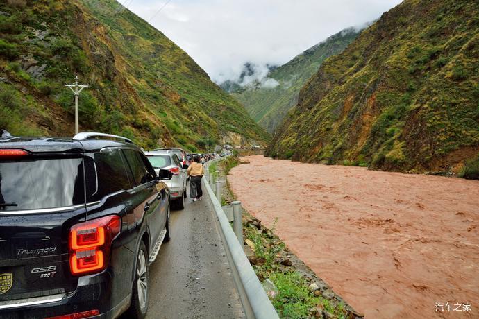 清晨天还没亮排队过检查站后,跨过金沙江大桥,从四川进入西藏境内。进入巴塘竹巴龙至芒康海通沟路段十多公里,遇见山洪把道路冲毁堵车。在堵了3个多小时后,眼看此冲毁路段即将抢通,前方路段又传来新的消息说是前方又出现塌方。大家商议决定还是先回自驾营地等待通车的消息。于是我们又从西藏返回四川,回到自驾营地休整一天。