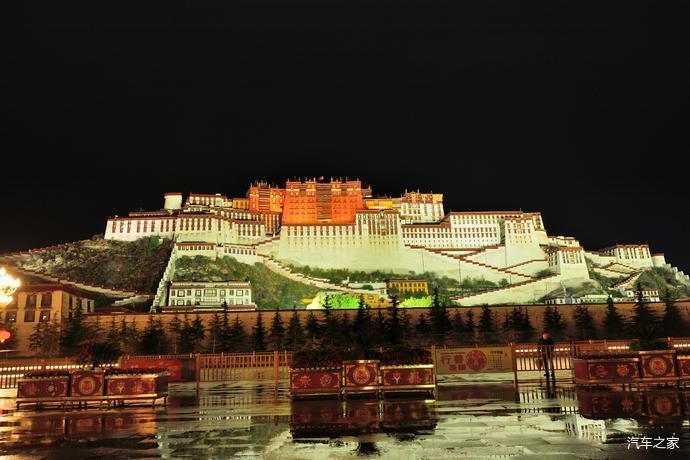 在路上经历了七天行程后,经过雨水洗礼,终于在夜色中进入了圣城拉萨。
