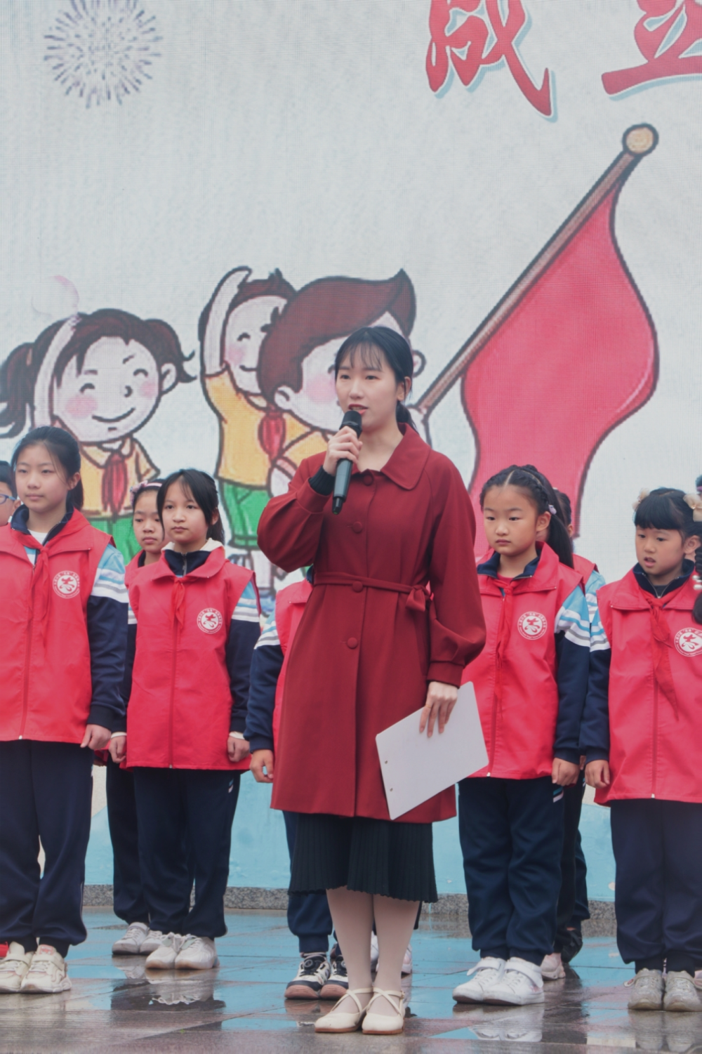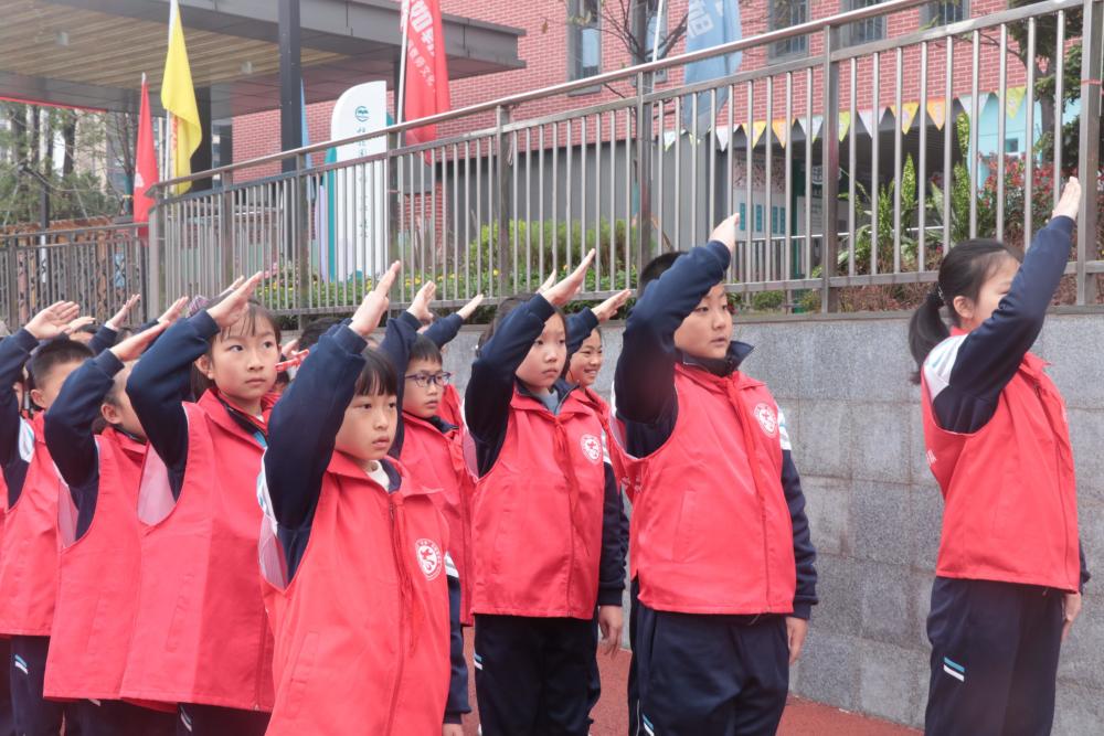 3月27日,大渡口区育才小学红旭校区二至五年级的49名同学,穿着红色马甲列队整齐走向舞台向全校师生亮相,他们拥有了一个特殊的身份——“红旭”小记者社团成员。红旭校区执行校长刘铤钏表示,学校打造“红旭”小记者社团的目的,就是通过小记者以“童言童语”的视角,宣传好全校师生传承时代楷模王红旭老师胸怀大爱、师者仁心的义渡精神典范和故事,形成致敬英雄的良好氛围。