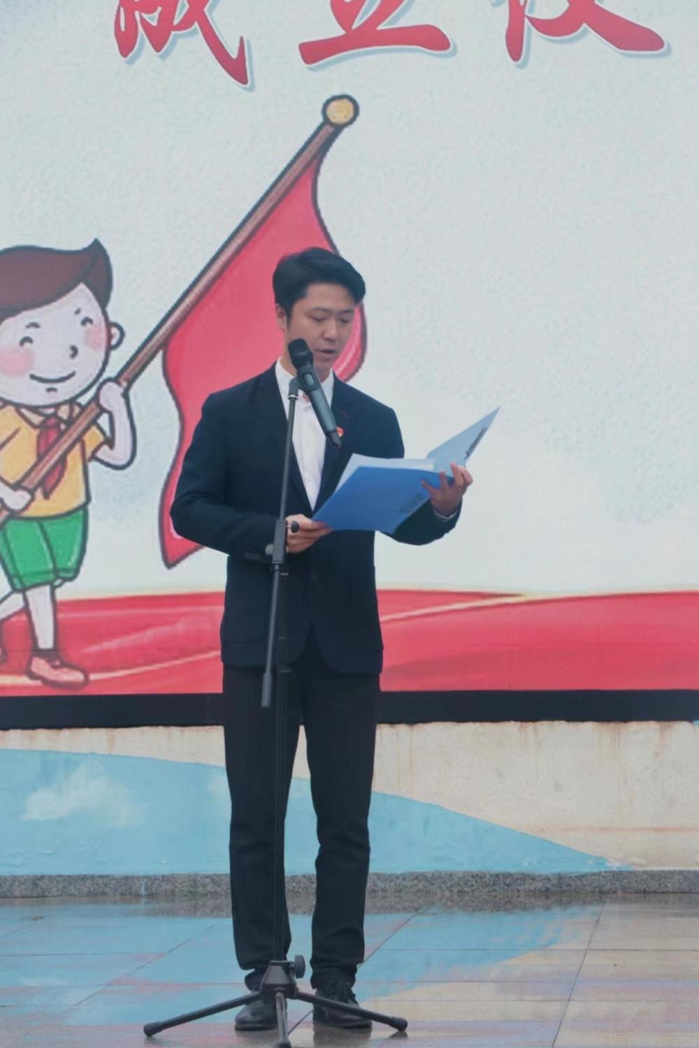 接着,小记者何昕倩从执行校长刘铤钏手中接过社团旗帜。何昕倩说,当接到这一面旗帜时,既感到光荣与自豪,又感觉到责任重大,一定不负全校师生的期望,努力学习,当好小记者,宣传好同学们学习英雄的故事。