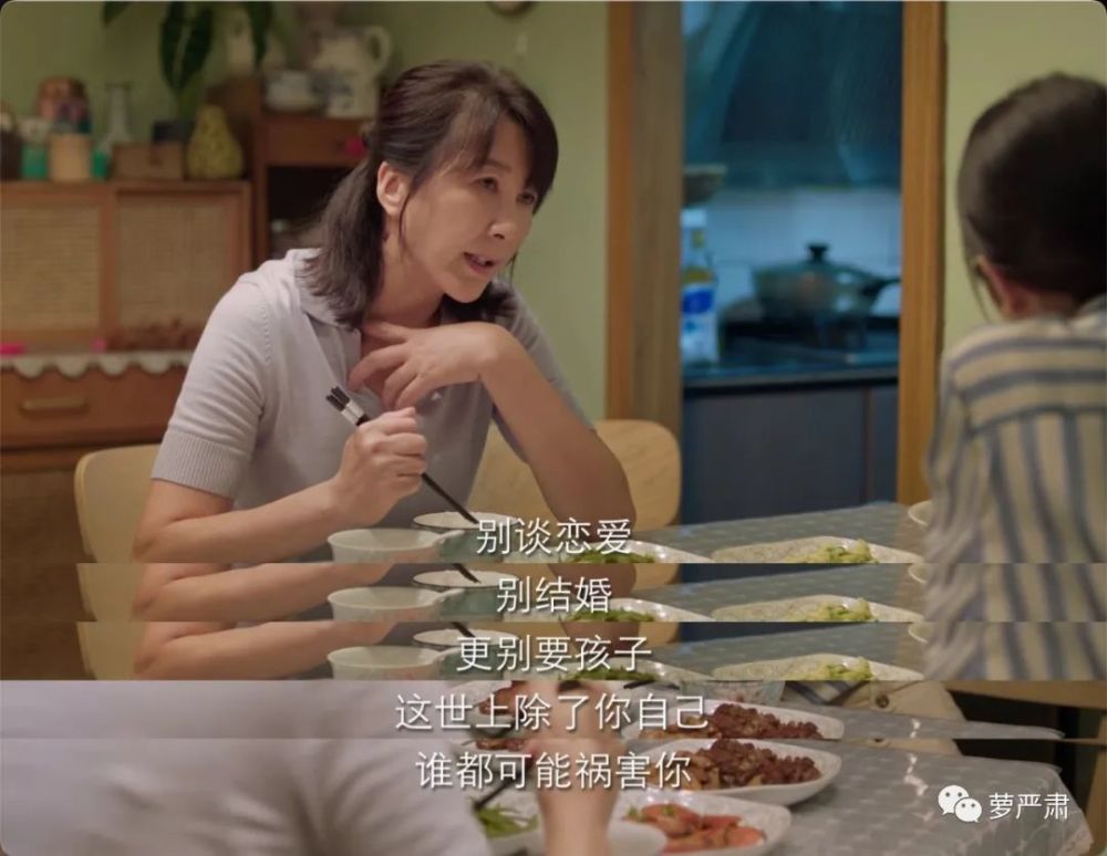 女主角的爸爸是出轨再婚的,这个听起来有点狗血。但女主角的妈妈不是“大婆教怨妇”,她因为自己失败的婚姻而教育女儿不要为了婚恋耽误自己的人生。这在国产剧里也是蛮少见。