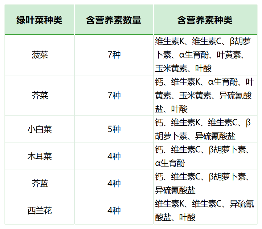 6种绿色菜是营养“全能王”