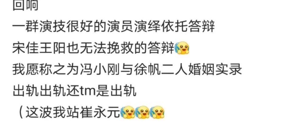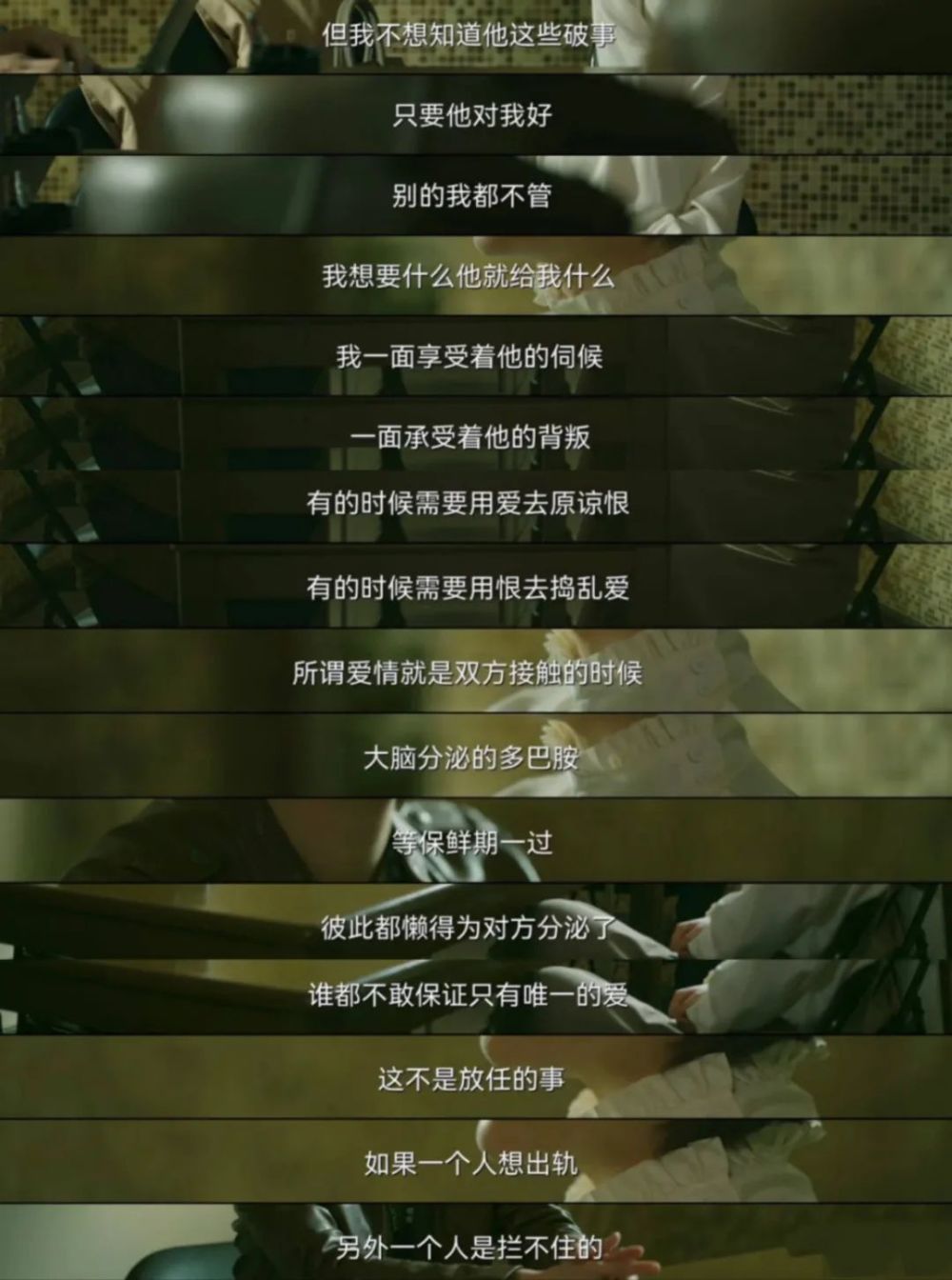 来看看《回响》中被出轨的太太面对警察询问时的这些台词,是不是有种似曾相识的感觉?