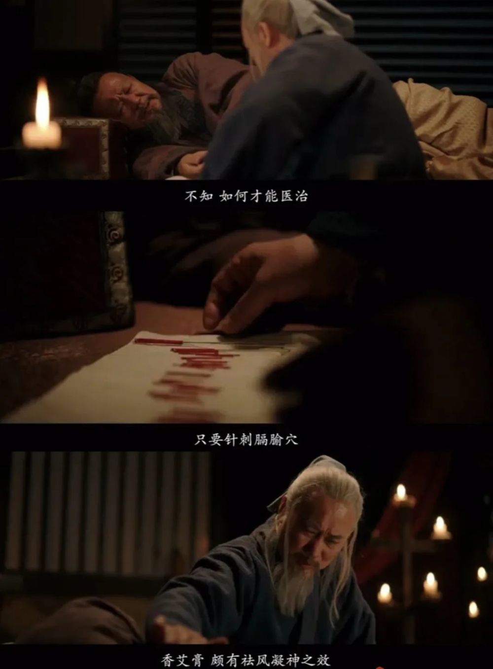 担心无法照顾一家老小的他,一反之前的儒雅与大义,骂华佗是害人精,直言进谏不过是引火烧身(就此引出了艾草冰台