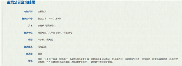 《黑社会3》我们是等不到了,但杜琪峰的最佳拍档韦家辉,最近备案了一部新电影《夜行侠 龙城歼霸战》,是一部“黑社会”题材的影片。