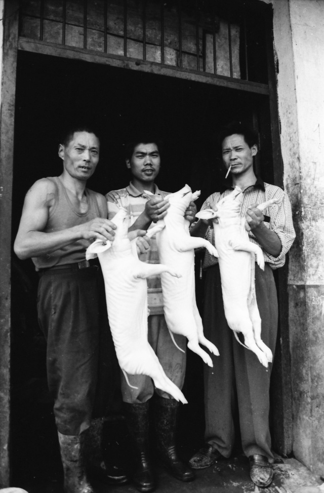 1998年,我去农村拍摄黑作坊。那些人向农民收购死猪、死狗、死猫、死鸡,用福尔马林泡得白生生的,加工成香肠。我乔装打扮,穿的很随便,提了一个包包,装成火腿厂的小老板。我又讲着本地话,活脱脱一个“串串”(四川方言,指在卖主和买主之间牵线牟利的人)。到了黑作坊,没人怀疑我是记者,还把死猪肉举成一排让我拍个够。