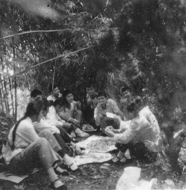 同学们看了照片,都喜欢得很。班主任也知道了,却批评我们不好好学习,男女同学勾到一起乱耍。但我们就是爱耍。五十多年过去了,我们这些同学情谊不减,又到当年的九里堤花圃一起游玩、拍照。