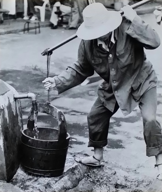 有人在井边挑水,有人拉车送煤球,有的蹲在路边吃面,有的全家坐在门口围着一个大盆热水烫脚。夏天天气很热,邮局门外,男男女女排队买邮票,前胸贴后背,没有发生什么非礼的事情,说明大家的品德觉悟还是比较高。