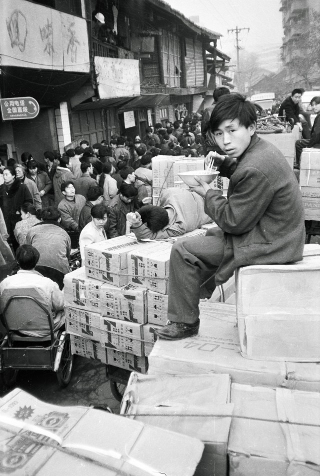 完成报道任务后,我仍像从前一样,喜欢街头拍照。那是上班或者采访的途中,还有下班以后,都是用我挣的稿费买胶卷来拍。我有时骑自行车,有时坐公交车,有时走路。相机挂在脖子上,随时留意,看到喜欢的场景我就拍。
