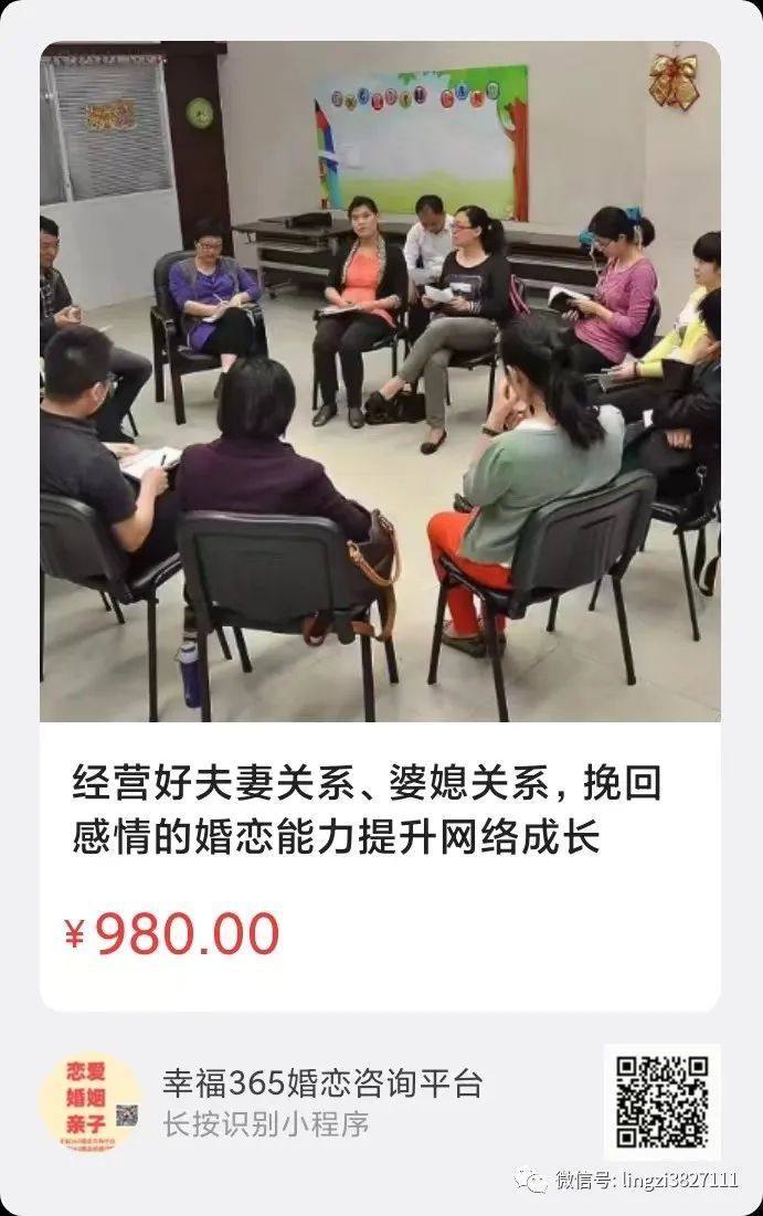我们推出的婚恋能力提升成长团体,帮助到了许多婚恋有困惑的朋友。原价1980元,三八妇女节980元,2023年第一场初级团体招募中。