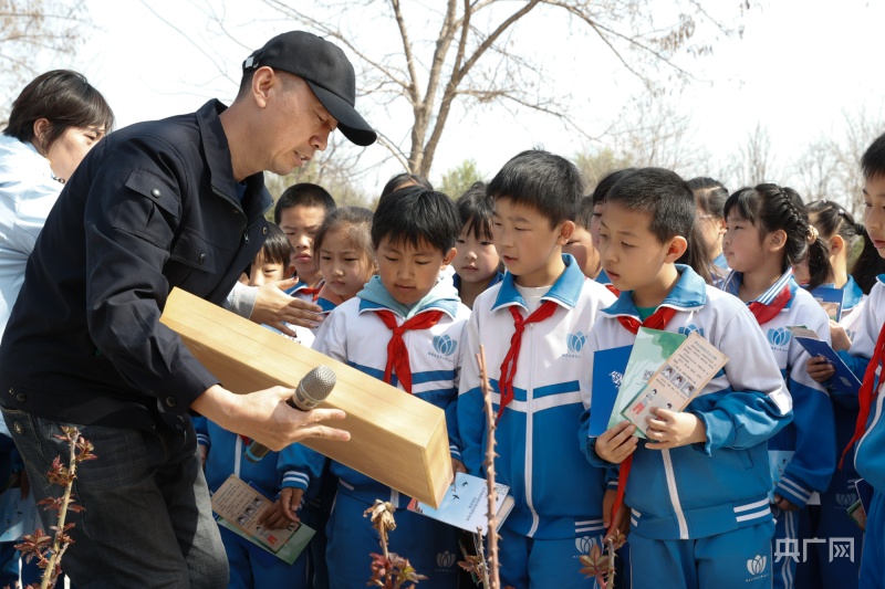 “这些树有什么特点?”“为什么要在这个时间段种树?”……带着同学们的疑问,护林员张海元从树木的品种、养护、周期、历史故事等相关知识,进行一一讲解,并发出倡议,关心、爱护绿色生命,以实际行动绿化环境、校园,精心呵护花草树木,争做绿化宣传员、环保小卫士。
