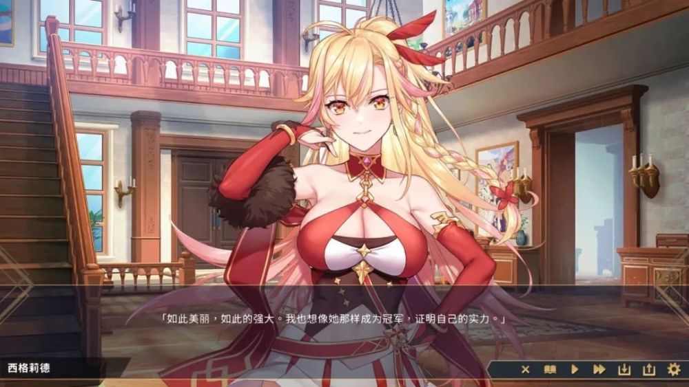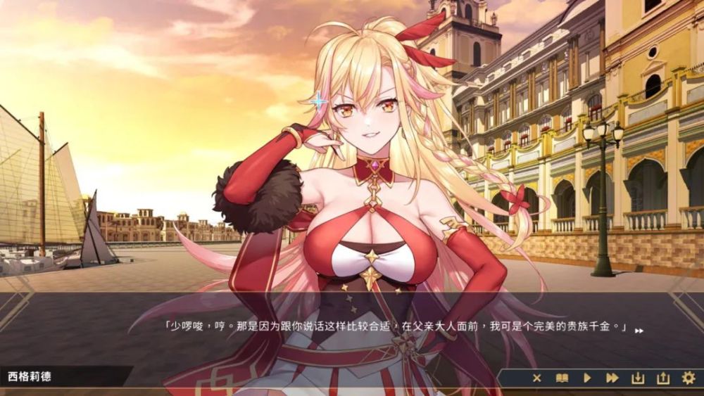稚嫩的笑容和可爱的虎牙暗示着小春天真内敛的性格,她的站姿和语气也偏向日系女仆的乖巧形象,更能给玩家带来亲近感。另一位女主西格莉特的着装设计则更为华丽奔放,虽然平时的她总是挂着一副高高在上的面孔,可进入“特别剧情”后,西格莉特便会卸下伪装,将软弱的部分毫无保留的展露出来,这种反差感也同样能给玩家带来更刺激的游戏体验。
